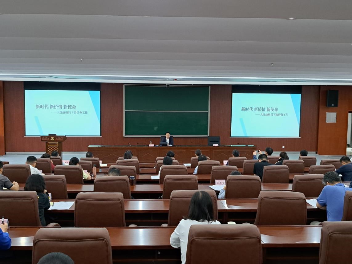 应蚌埠市委统战部邀请,9月21日,安徽省侨联副主席、原党组成员、一级巡视员杨冰在蚌埠市委党校为全市侨务工作者作专题报告。蚌埠市委统战部副部长、市侨联党组书记金梅主持会议。市直涉侨部门有关负责同志,各县区、乡(街)统战、侨务干部等参加报告会。