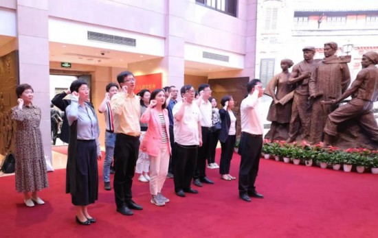 在纪念馆序厅内,党员同志们面对鲜红党旗,重温入党誓词,并发出铮铮誓言:作为一名新时代党员、统战工作者,将以习近平新时代中国特色社会主义思想为指导,当好党章和统一战线政策的忠实执行者和实践者,为做好新时代侨联工作踔厉奋发、砥砺前行,以实际行动迎接党的二十大胜利召开。
