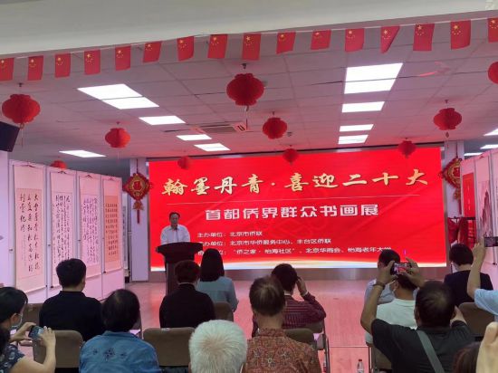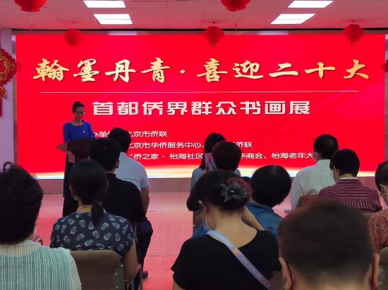 8月30日下午,“翰墨丹青·喜迎二十大”首都侨界群众书画展开展仪式在“侨之家·怡海社区”举行。北京市侨联主席荣洋,丰台区委常委、统战部部长郭晓一,市侨联党组成员、副主席兼秘书长李登新,丰台区委统战部副部长、区侨联负责人丁志艳等出席开展仪式,书画作者和侨界社团代表40余人参加。市侨联二级巡视员刘峰主持开展仪式。