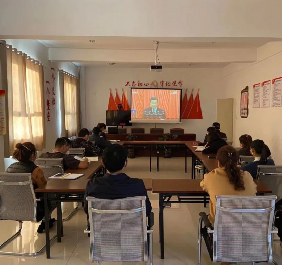 自治区侨联驻温宿县佳木镇加依村“访惠聚”工作队组织党员干部集中观看党的二十大开幕会盛况