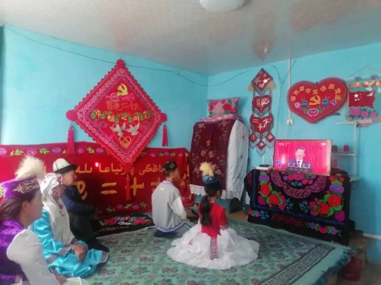 尼勒克县侨眷在家中观看党的二十大开幕会盛况