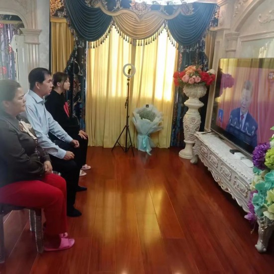 新和县侨眷在家中观看党的二十大开幕会盛况
