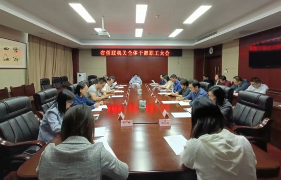 10月25日,江西省侨联召开全体干部职工大会,传达学习党的二十大精神,以及全省领导干部会议和省委常委会精神,对学习宣传贯彻党的二十大精神进行动员部署,要求全体干部职工迅速把思想和行动统一到党的二十大精神上来,完整准确全面贯彻党的二十大精神,准确把握新时代侨联工作重点任务,奋力谱写新时代江西省侨联事业发展新篇章。会党组书记、主席唐舒龙主持会议并讲话,党组成员、副主席王强,秘书长蔡峻出席会议。