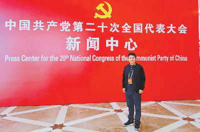 图为马强在中国共产党第二十次全国代表大会新闻中心。