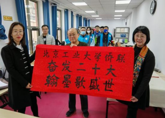 在北京工业大学统战部的支持下,北京工业大学侨联主席李静,副主席李建荣、王金淑、李建强,秘书长郭翔鹰等十余名老师,以及侨联志愿者中热爱书法绘画的10余名同学参加了本次活动。