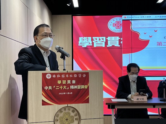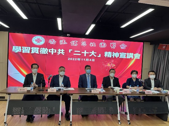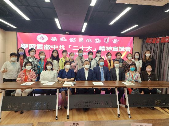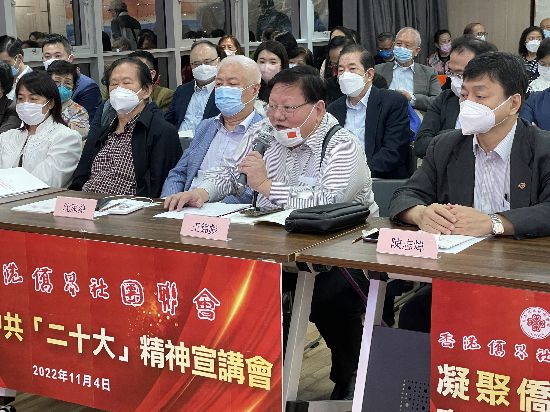 举世瞩目的中国共产党二十大胜利闭幕了。党的二十大开启国家和香港发展新征程。香港侨界社团联会于 11 月 4 日在会所召开学习党的二十大精神宣讲会,邀请全国人大常委谭耀宗等有关部门领导、侨领及各侨界团体负责人参加座谈,畅叙感受互相交流,领会精神落实行动。