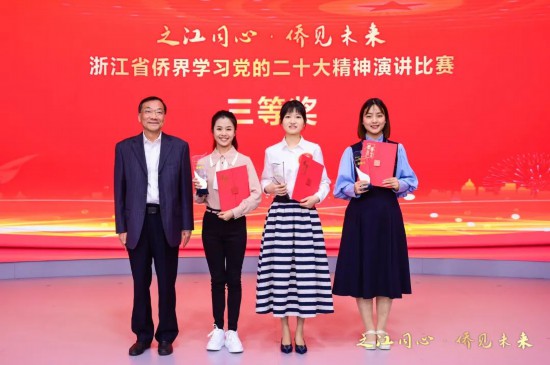“党的二十大胜利召开在海内外侨界引起了热烈反响,举办此次比赛,丰富了贯彻学习党的二十大精神的形式,起到了凝聚侨心、鼓舞奋进的良好作用,也在全省侨界掀起学习党的二十大精神的热潮。希望广大侨胞要将爱国之情根植于心、践之于行,广泛团结侨界群众,做民族伟大复兴的参与者、构建人类命运共同体的推动者、中外文化交流的传播者,为扎实推进浙江共同富裕示范区建设,助推‘两个先行’中彰显侨界力量,展示侨界担当。”浙江省委统战部副部长吴炳芳在点评演讲比赛时说。