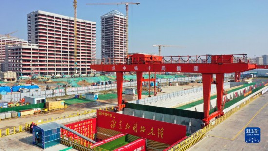 济南轨道交通6号线全线首台盾构机“启鲁一号”在于家庄站顺利始发,标志着济南轨道交通6号线工程西部标段正式进入盾构施工新阶段(2022年11月5日摄)。新华社记者 郭绪雷 摄