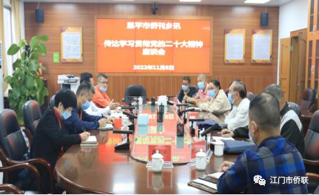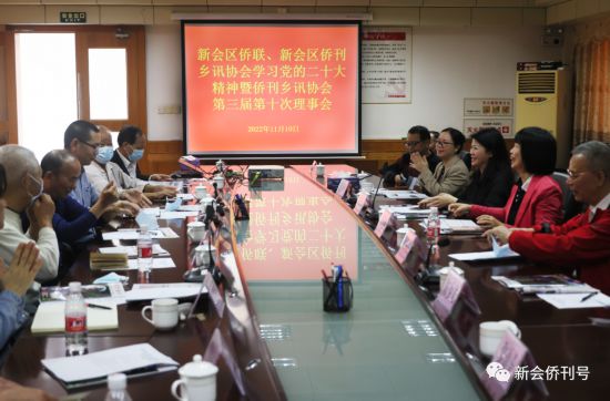 11月10日上午,江门新会区侨联和侨刊乡讯协会在新会区司前镇政府召开学习贯彻党的二十大精神会议。