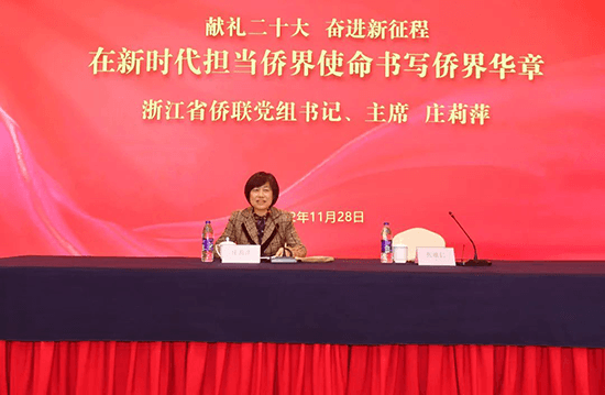 11月28日,浙江省侨联党组书记、主席庄莉萍在全省侨联系统党的二十大精神宣讲会暨省侨联十届六次主席(扩大)会议上,以党课形式专题宣讲党的二十大精神。