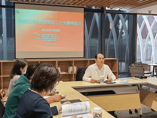 近日,由佛山市禅城区归国华侨联合会、禅城区新时代文明实践中心主办,禅城区留学精英促进会、佛山万科金融中心党委承办的禅城区学习贯彻党的二十大精神宣讲进企业进社会组织宣讲会在万科楼宇党群服务中心会议室举行。禅城区留学精英促进会多名骨干会员参加了宣讲会,禅城区侨联副主席鲁涛进行了宣讲。