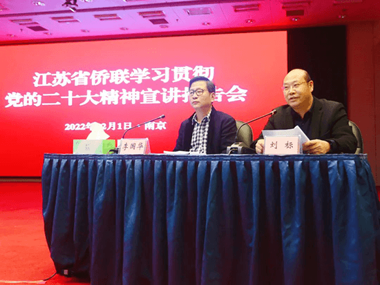 12月1日,江苏省侨联学习贯彻党的二十大精神宣讲报告会在南京举行。党的二十大代表、江苏省委宣讲团成员、省委统战部常务副部长李国华作宣讲报告。江苏省侨联主席、党组书记刘标主持报告会并讲话。江苏省侨联党组成员、副主席艾卉、张霓,二级巡视员李发勇,省和南京市侨联干部职工、侨界群众代表等参加会议。