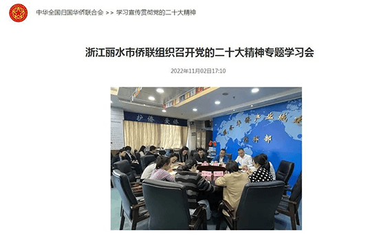 中国侨联刊登丽水市侨联学习党的二十大精神相关信息。