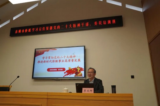 为深入学习宣传贯彻党的二十大精神,迅速把广大侨联干部、委员思想和行动统一到党的二十大精神上来,把力量凝聚到党的二十大确定的目标任务上来,进一步加强苏州市各级侨联干部、委员队伍建设,更科学地谋划侨联工作,实现苏州市侨联事业创新发展。12月5日,江苏苏州市侨联举办学习宣传贯彻党的二十大精神干部、委员培训班,苏州市侨联党组书记、主席李文辉出席开班仪式并作动员讲话。