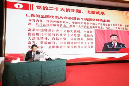 为深入学习宣传贯彻党的二十大精神,全面落实省第十二次党代会部署,把广大归侨侨眷和海外侨胞紧密团结在党的周围,打好新时期“侨牌”,推动山东省侨联事业更高质量发展,助力全面开创新时代社会主义现代化强省建设新局面,12月7日上午,山东省侨联党组书记、主席李兴钰以“深入学习宣传贯彻党的二十大精神,开创山东侨联事业新局面”为题宣讲党的二十大精神。山东部分侨(社)团、侨商会和侨资企业代表以及侨联系统干部、侨界群众共聚一堂,聆听宣讲报告,研究探讨当前和今后一个时期山东侨联事业高质量发展的新路径、新模式、新方法。