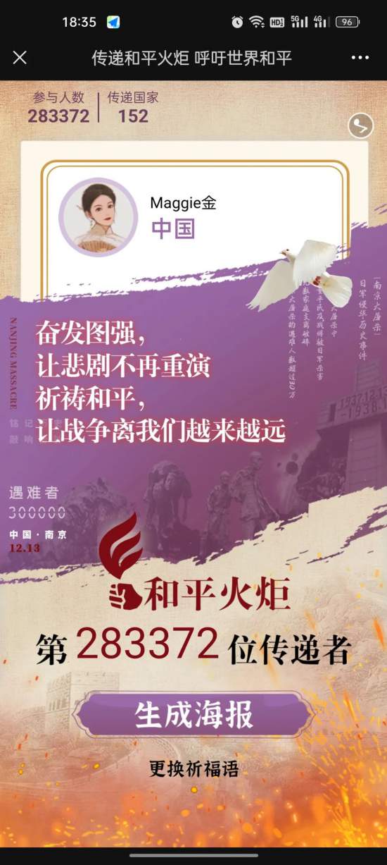 英国江苏总商会会长张海说,“我们希望世界了解真相,和平永驻人间,更希望年轻人牢牢铭记这段历史以及战争的残酷,懂得国家曾历经的艰辛,共同传递世世代代和平的美好愿望。”