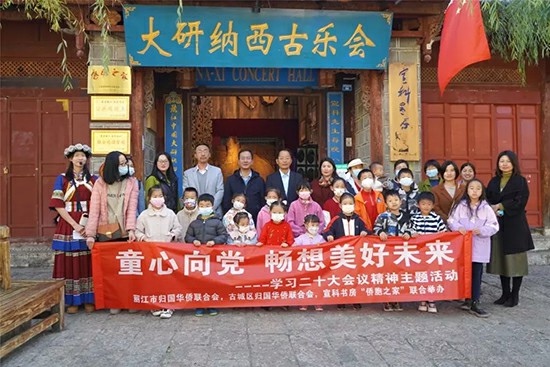 在丽江古城宣科书房“侨胞之家”,举办了一场“童心向党 畅想美好未来”学习党的二十大会议精神主题活动。经过重走长征路参观红军长征过丽江指挥部纪念馆活动、“学习二十大 你问我答”答题活动、手工制作“爱你中国”相框等一系列活动,声声童音,传递着爱与希望,锻炼了侨界孩童的动手能力,也让他们进一步了解了中国共产党的辉煌历史,更激励了丽江侨界青少年学习领悟党的二十大精神,增强了小朋友们爱党爱国的热情。