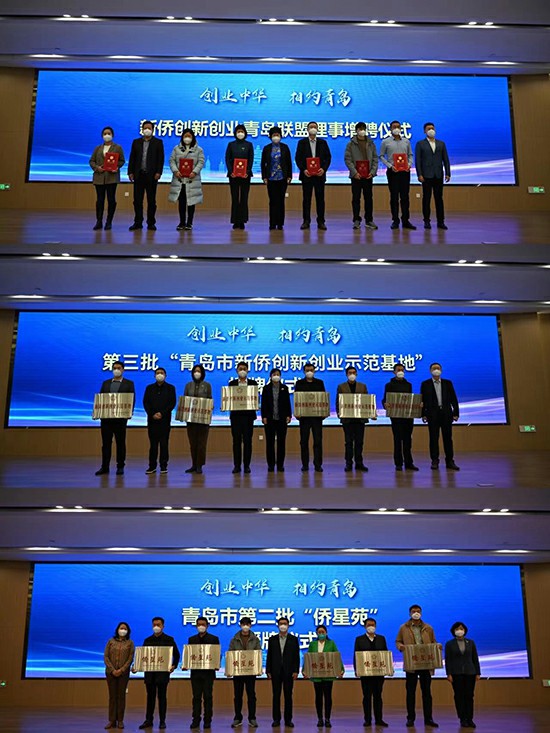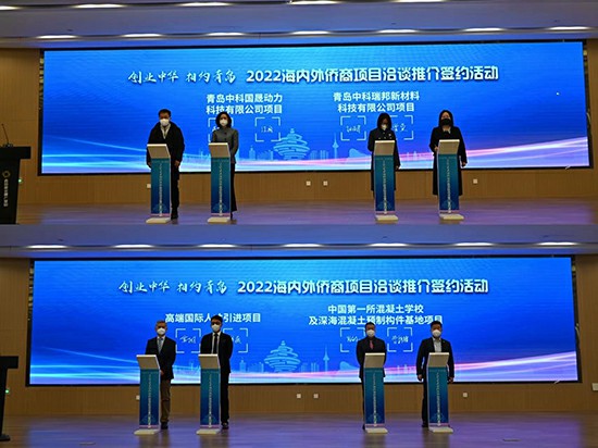 高端国际人才引进项目、中国第一所混凝土学校及深海混凝土预制构件基地项目、青岛中科国晟动力科技有限公司项目、青岛中科瑞邦新材料科技有限公司项目等4个侨资项目进行集中签约。活动为新增聘的新侨创新创业青岛联盟执行副理事长、理事代表颁发了聘书,为第三批“青岛市新侨创新创业示范基地”、第二批“青岛市侨星苑”进行授牌。