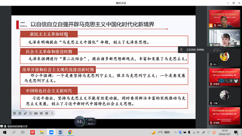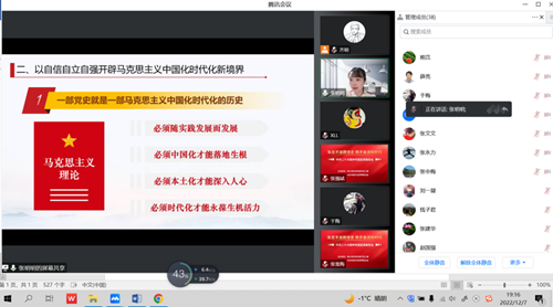 张教授围绕“如何以自信自立自强开辟马克思主义中国化时代化新境界、为什么要坚持把马克思主义基本原理同中华优秀传统文化相结合、如何在“两个结合”中推进马克思主义中国化以及以中国式现代化全面推进中华民族伟大复兴”等四个方面为大家进行了系统讲授。