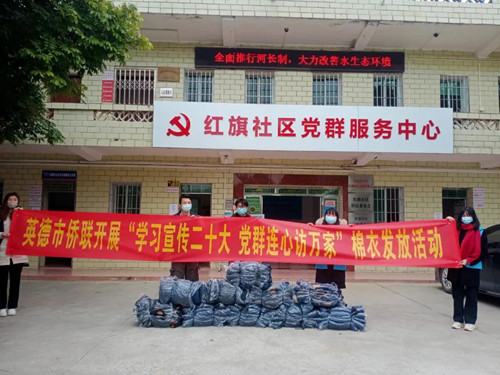 走访在继续,宣讲正当时。英德市侨联党员干部落实联系服务群众工作机制,深入英德华侨茶场、英红华侨茶场,以送棉衣为契机,上门入户联系侨界群众,与侨界群众面对面沟通交流,以通俗易懂的语言向侨界群众宣讲党的二十大精神,并了解归侨侨眷群众家庭情况和现实需求,收集侨界群众对“美丽侨村建设”“茶场改革发展”等方面的意见和建议。