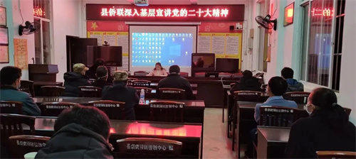 为深入学习贯彻党的二十大精神,推动学习宣传贯彻工作走向基层、走进农村、深入群众心中,将二十大精神融入到指导农村发展实践中,近日,德宏州陇川县侨联党支部书记、主席俸云丽到城子姐乌村开展党的二十大精神宣讲,驻村工作队、姐乌村部分党员代表共40余人参加。