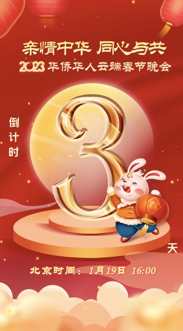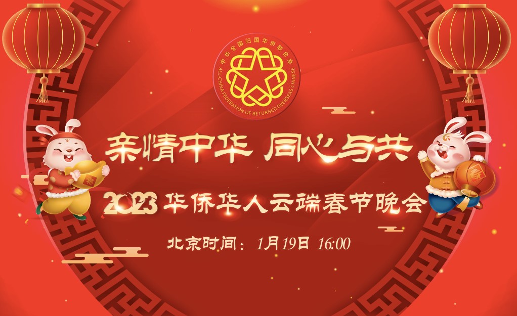 为表达对海外侨胞的惦念,彰显祖(籍)国对侨胞的关爱,传递全体华侨华人共同的美好心愿与形成共同致力民族复兴的强大力量的共识,由中国侨联主办的“亲情中华·同心与共”2023华侨华人云端春节晚会将于北京时间2023年1月19日16:00上演。