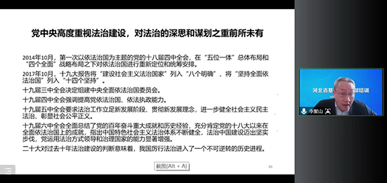 河北省委党校党的建设教研部副主任、三级研究员李聚山教授从过去五年的工作和新时代十年的伟大变革等十五个方面对二十大精神做了深入的解读辅导,带领大家进一步加深对党的二十大精神内涵、外延的理解和把握。