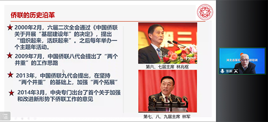 河北省侨联基层建设部部长边岳鹏聚焦推进全省基层侨联组织建设,作了授课辅导。对今年以来河北全省基层侨联组织建设取得的成绩作了系统梳理总结,并结合各地组织建设实际提出了具体工作举措。