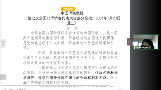 中国侨联权益保障部法律服务处处长、法顾委办公室主任雷霆围绕《中国侨联章程》,就如何按照《章程》开展工作为参训学员做了精彩授课,希望广大学员在今后工作中严格按《章程》办事履职,扎实推进新时代侨联工作,当好归侨侨眷的贴心人、做好侨务工作的实干家。