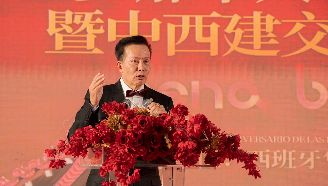 林传平主席在致词中表示,今年是中西建交50周年,我们举办慈善晚宴除了致敬过往还展望未来。总会推动加区政府说服西班牙中央政府支持北京奥运会,使西班牙成为欧洲第一个支持北京奥运会的国家;联谊总会还促成了巴塞罗那与北京结成奥运友谊城市;此外,联谊总会开启巴塞罗那举办春节庆祝活动先河,并成功促成市政府将春节活动列为巴塞罗那市重要民俗公共活动。今天我们还要传递两个重要内容:一把20大精神带进高等学府,由六所大学的学者,用中西文化进行不同的解读以及对未来的期许;二是由当年当事的官员通过自身经历,阐述联谊总会在中西建交50周年中所做的贡献和努力。