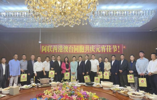 当地时间2023年2月03日下午,元宵佳节来临之际,阿联酋中国和平统一促进会组织邀请港澳台同胞参加以“两岸一家亲 共聚团员情”为主题的元宵交流活动,阿联酋中国统促会会长陈志祥、执行会长张建忠、执行副会长张旭明、陈中奇,常务副会长兼秘书长符永美、监事长万文辉、常务副会长刘娅、港澳台同胞等近30人参加元宵交流活动。并为港澳台同胞赠送节日礼品。