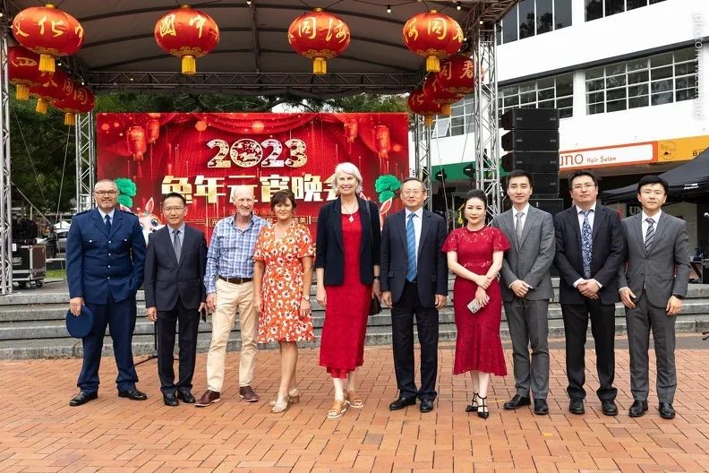 中国驻奥克兰总领馆陈世杰总领事、王俊超副总领事以及周立、吴凯和蒋俊领事、 奥克兰中国文化中心王建文主任及新西兰华星艺术团团长李芬一行驱车从奥克兰赶来参加活动。国会议员Jamie Strange、David Bennett和Tama Potaka,汉密尔顿市长Paula Southgate, 副市长Angela O'Leary,市议员Ryan Hamilton、Kesh Naidoo-Rauf, Anna Casey-Cox、Louise Hutt和Ewan Wilson,怀卡托警局社区事务负责人警长William Cuthers,汉密尔顿市种族事务联络官Jovi Abellanosa,市中心商会经理Vanessa Williams,C Homes总裁梁才、SkyCity Hamilton总经理Michelle Baillie及社会各界朋友三千余人参与了活动,共同欢庆兔年元宵灯节。新西兰华星艺术团选送的节目和汉密尔顿本地艺术家们表演的节目为现场观众呈现了一场欢乐喜庆的中国文化盛宴。