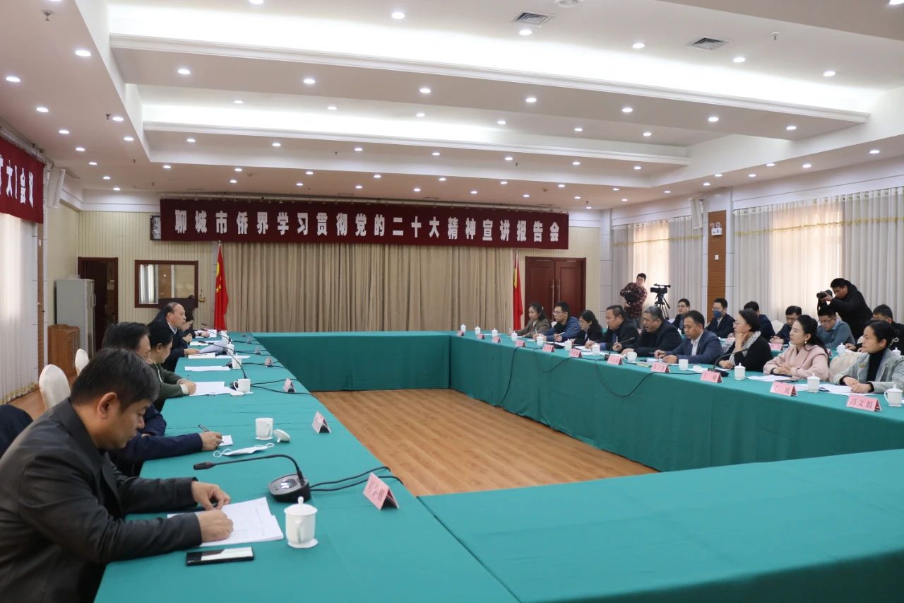 2月14日,聊城市侨界学习贯彻党的二十大精神宣讲报告会召开。市委统战部副部长、市侨联主席、市侨办主任陶新镇作宣讲报告。市侨联第三届委员会全体委员、特邀顾问,县(市、区)侨联、侨务工作的有关负责同志,侨商会、侨创联盟企业代表等参加会议。