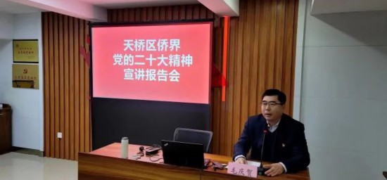 毛庆贺强调,学习宣传贯彻党的二十大精神是侨界当前和今后一个时期的首要政治任务。要坚持深学细悟,全面准确领会精神实质,深刻把握党的二十大对新时代侨务工作的决策部署,加强和改进侨务工作,为建设新时代社会主义现代化强区广泛凝聚智慧和力量。要把学习贯彻党的二十大精神与落实习近平总书记关于侨务工作的重要论述结合起来,进一步找准侨联工作的聚焦点、结合点、切入点,把广大归侨侨眷和海外侨胞更加紧密地团结在以习近平同志为核心的党中央周围。要充分发挥侨界联系广泛、联通内外的优势,向海外积极宣传天桥、推介天桥,为天桥与海外交流交往、开放合作牵线搭桥,最大限度激发海外侨胞、归侨侨眷的积极性,努力为推动天桥经济社会高质量发展贡献侨界力量。