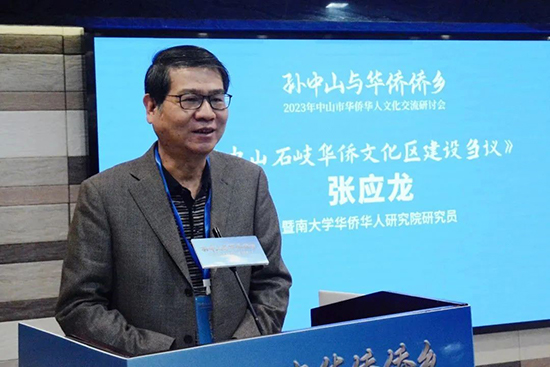 中国华侨历史学会副会长、暨南大学华侨华人研究院研究员、广东华侨历史学会会长张应龙作了题为《中山石岐华侨建设刍议》的报告。张应龙教授认为,华侨文化既是中山历史文化的重要组成部分,也是中山历史文化的重要特色,而石岐作为中山“城核”在中山文化兴城中占有重要的地位。中山在文化兴城发展的过程中一定要突出侨,中山的华侨历史、华侨文化,应该形成中山自己的文化优势,只要聚焦、利用现有的基础,未来发展文化会起到非常好的作用。要对石岐的华侨文化资源和历史文化资源做全面的整合,描绘一个完整的路线图,从华侨文化的角度重新规划孙文西路的业态,发挥各种文化资源的叠加作用,全力打造好以孙文西路步行街为中心的华侨文化区。