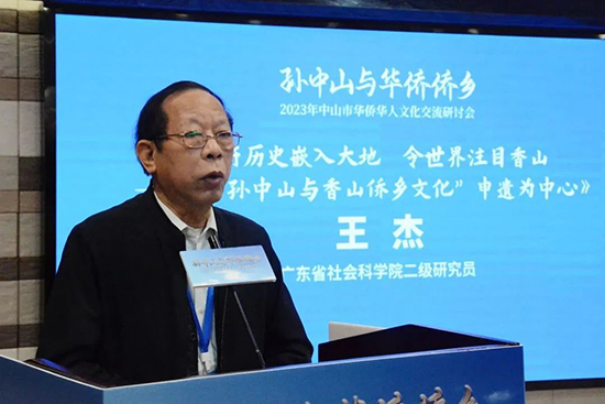 广东省社会科学院研究员、孙中山研究所原所长王杰作了题为《将历史嵌入大地,令世界注目香山》的报告。王杰教授提出,应该以“孙中山与香山侨乡文化”为主题申报世界文化遗产,并将此项目升华为市级战略,制订长远与短期的规划,长短结合,虚功实做,擦亮香山侨乡文化品牌,推进中山宣传、文化与旅游事业同步拓展,以达到多赢的效果。