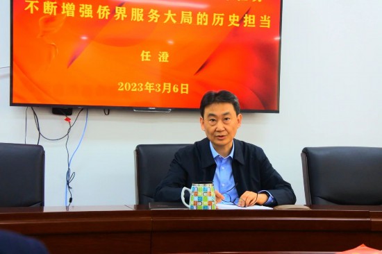 结合侨联工作实际,任澄以“深刻领悟以中国式现代化推进中华民族伟大复兴的使命任务,不断增强侨界服务大局的历史担当”为主题,从三个方面进行重点宣讲。一要提高政治站位,更加自觉地把思想行动统一到党的二十大精神上来。坚定不移在思想上政治上行动上同以习近平同志为核心的党中央保持高度一致。加强侨界思想政治引领,引导广大侨胞将爱国爱疆之情根植于心、践之于行,广泛团结侨界群众,紧跟核心奋斗新征程,自觉做民族伟大复兴的参与者、构建人类命运共同体的推动者、中外文化交流的传播者,用最大公约数画好侨界最大同心圆,最大限度汇聚起同心共圆中国梦、实现中华民族伟大复兴、建设美好新疆的磅礴力量。