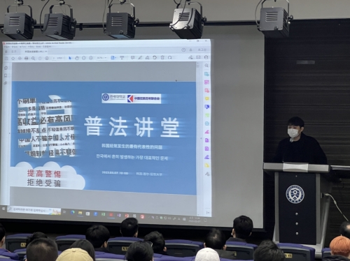 近年来,人民法院调解平台侨联系统海外调解组织——中国在韩青年联合会公益维权委员会(以下简称“维权委”)收到大量以留学生群体为主的求助信,聚焦电信诈骗、新型毒品、邪教等问题。为增强中国留学生的反诈骗、防毒品、防邪教意识,帮助他们提高辨别是非的能力,由维权委和韩国延世大学共同主办的《普法讲堂》于2023年3月7日走进延世大学。