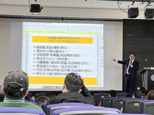 维权委工作人员为同学们详细讲解了在韩衣食住行、如何预防侵权案件发生以及遇到问题如何应对等内容,并以中国留学生代买奢侈品为例讲解电信诈骗,增强同学们守法及维权意识。