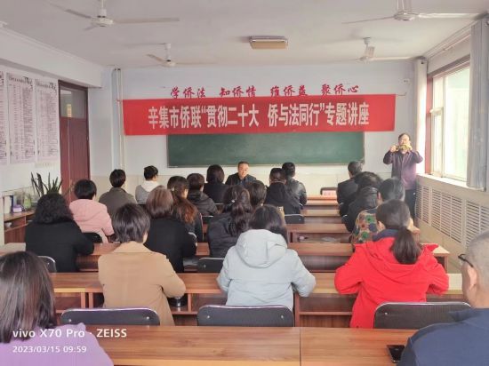 为全面贯彻落实党的二十大精神,进一步加大侨界普法力度,提升侨界群众法治观念,增强侨界群众学法、懂法、守法、用法意识,3月15日,辛集市侨联在助友侨胞之家(陶然老年大学)举办“贯彻二十大 侨与法同行”专题讲座。辛集市侨联部分班子成员、各侨胞之家负责人、法顾委负责人以及侨界群众60人参加了活动。