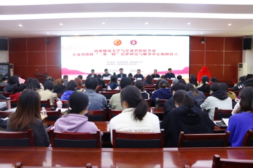 3月16日,甘肃省侨联“一带一路”法律研究与服务中心揭牌仪式在西北师范大学举行。省侨联主席闫鹏勋、西北师范大学党委书记贾宁出席会议并致辞。会议由西北师范大学法学院院长何俊毅主持。