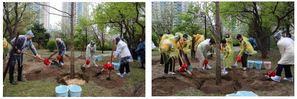 餐叙后,欧伦斯先生与怡海小学35名学生一起,在怡海花园社区开展了植树活动,共同种下“友谊林”。