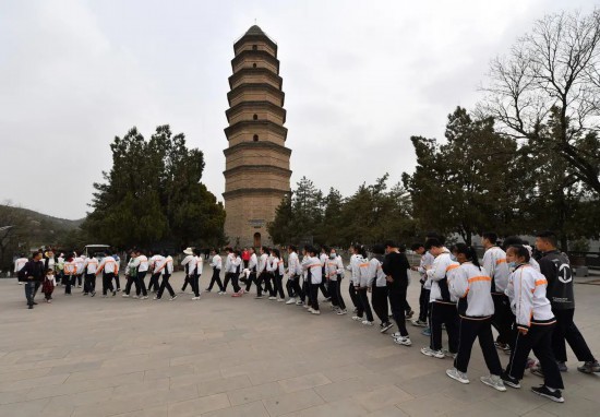 参观者在陕西延安宝塔山参观(2021年3月30日摄)。新华社记者 张博文 摄