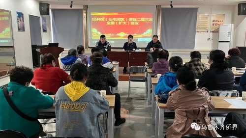4月19日,乌鲁木齐市经开区(头屯河区)侨联二届三次全体委员会在钢城片区管委会洛克伦“侨胞之家”召开。区侨联主席许丽、副主席王军及侨联委员20人参加会议。