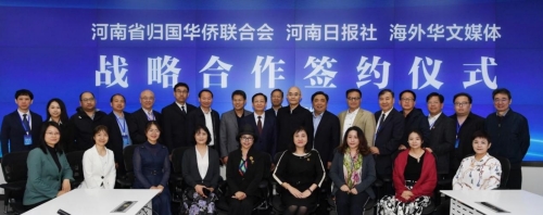 4月27日,河南省侨联二级巡视员刘合生,河南日报社党委委员、副总编辑张学文分别代表河南省侨联、河南日报社与16家海外华文媒体签署了战略合作协议,河南省侨联党组书记、主席杨海强为16家海外华文媒体代表颁发“河南推荐官”证书。海外华文媒体纷纷表示,虽然相隔万水千山,有机会还要回到“老家河南”看看,感受中华文化的博大精深,挖掘黄河文化的时代价值,向世界推荐精彩河南。