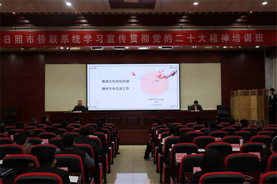 4月6日下午,文化交流部部长刘奇以《推进文化自信自强 做好文化交流工作》为题为日照市侨联系统学习宣传贯彻党的二十大精神培训班进行授课。