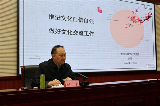 刘奇在讲课中特别提到,在新形势下,侨联文化交流工作一要深入学习宣传贯彻党的二十大精神,坚守中华文化立场,提炼展示中华文明的精神标识和文化精髓;二要锐意创新,挖掘优势,重视海外侨胞的各种载体,为讲好中国故事搭建传播平台,努力讲好中国故事、传播好中国声音;三要凝心聚力,加强国际传播能力建设,让海外侨胞成为“民间文化大使”,推动中华文化更好走向世界。刘奇鼓励培训班学员要了解5000年中华民族文明史和灿烂的文化,坚定文化自信自强,立足岗位尽职尽责,讲好中国特色社会主义的故事,提高做好新时代侨联文化交流工作的能力和水平。