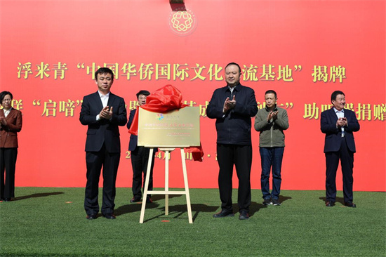 中国侨联文化交流部部长刘奇和日照市委副书记王新生为浮来青“中国华侨国际文化交流基地”共同揭牌。
