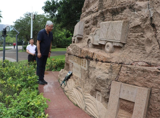 在海口青少年活动中心广场,左志强一行瞻仰了南洋华侨机工回国服务团、琼崖华侨联合总会回乡服务团纪念雕塑并敬献鲜花。海南华侨文学艺术家协会副会长、海南南侨机工罗豫川的长孙罗长英详细介绍了南侨机工回国参加抗日救国事迹。