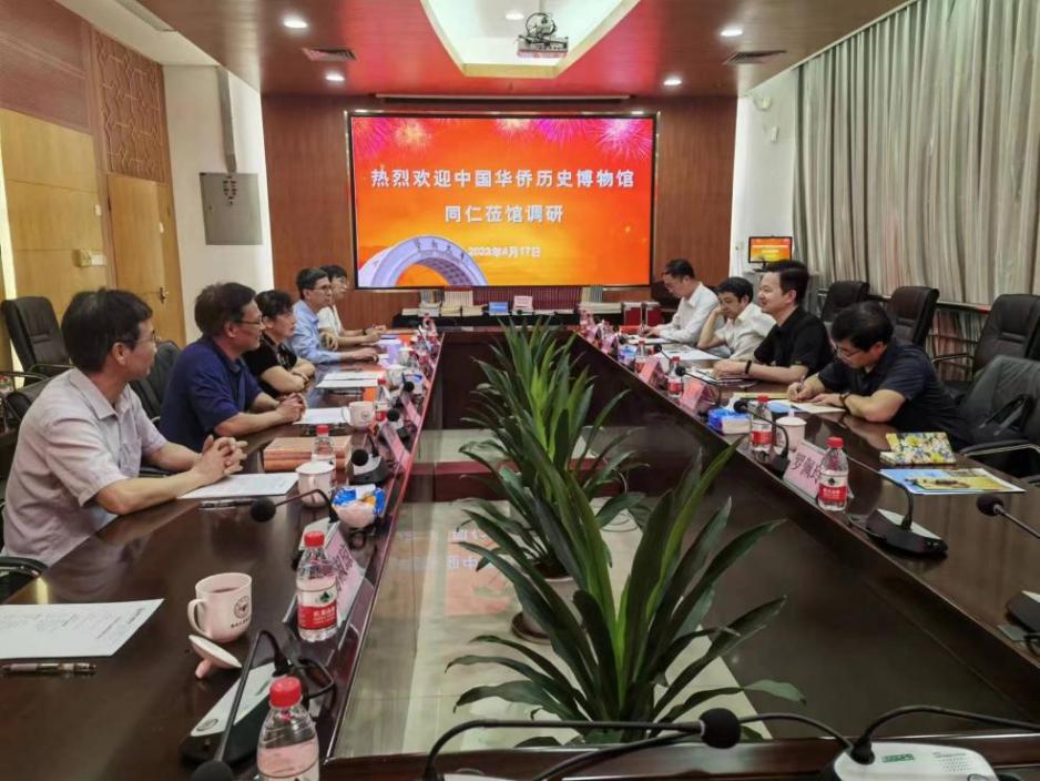 在粤期间,广东省委统战部、省侨联、省档案馆,广州市、潮州市、汕头市、江门市,中山大学、暨南大学、五邑大学、韩山师范学院有关负责同志会见了调研组一行,就进一步做好涉侨文物保护与利用、涉侨博物馆建设交换了意见。中国华侨历史博物馆办公室、藏品部、数据信息中心有关同志参加调研。